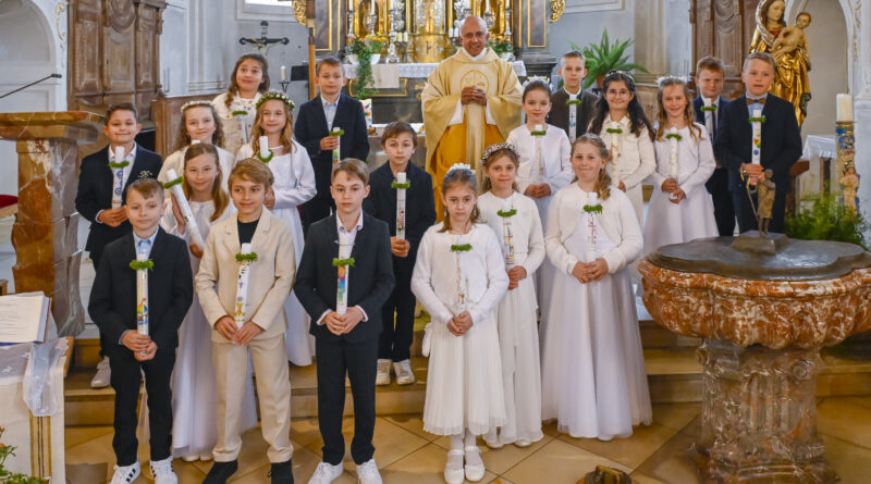 19 Kinder aus den Pfarreien Merching und Hochdorf feierten am Weißen Sonntag in der Pfarrkirche St. Martin in Merching ihre Erstkommunion.
