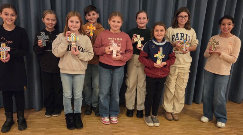 Mit viel Freude und Geduld gestalteten die Kinder wunderschöne Mosaikkreuze, jedes davon ein einzigartiges kleines Kunstwerk.